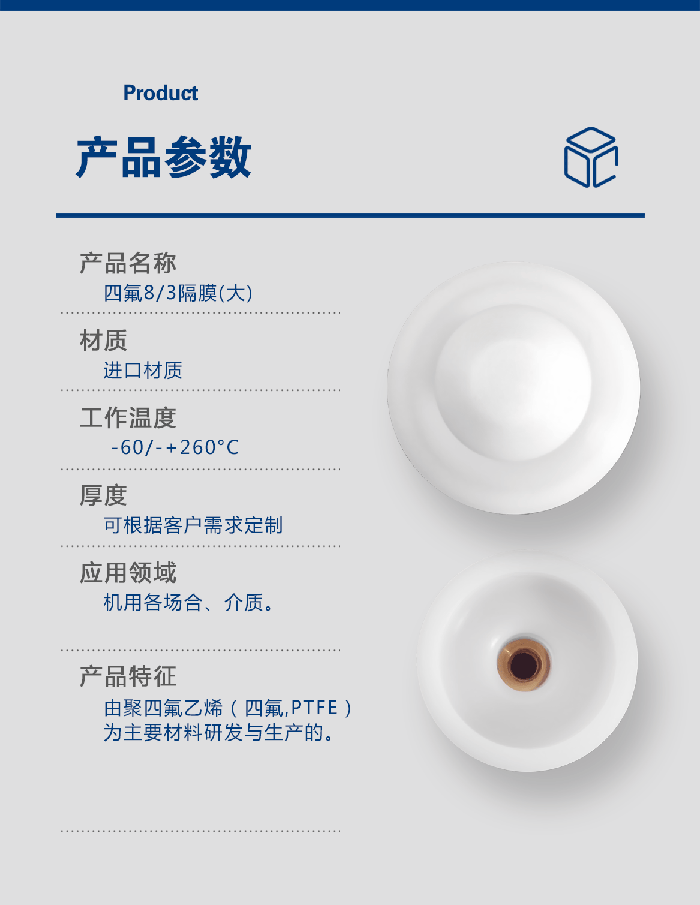 進口PTFE隔膜 - 此配件是由四氟(PTFE/聚四氟乙烯)材料研發(fā)生產而成的,用于泵類如氣動隔膜泵、計量泵等,閥類,規(guī)格尺寸可定制!